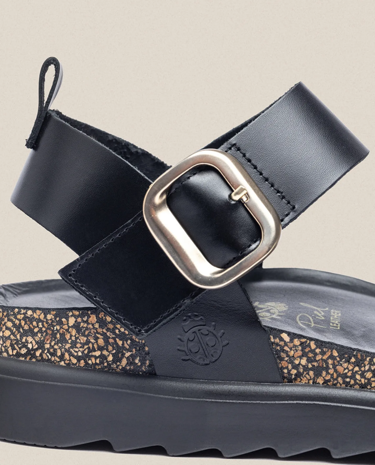 La sandalia de plataforma TUNEZ 128 en negro, con detalles en dorado y una tira que agarra los dedos que transmite comodidad. Hebilla decorativa y cierre de velcro para una mayor comodidad. Plataforma de 4 cm y una plantilla antideslizante que garantiza el agarre del pie. Está elaborado de manera artesanal en España, material de piel y uso de tintes vegetales respetuosos con el medio ambiente