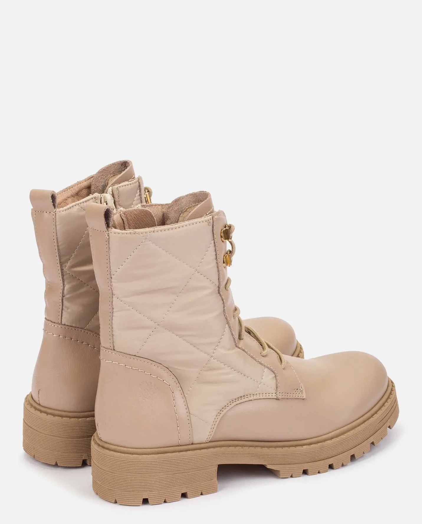 Botín beige con suela track de 3,5 cm con corte exterior de piel vacuna. Fabricada en España.Diseñado con cordones de…