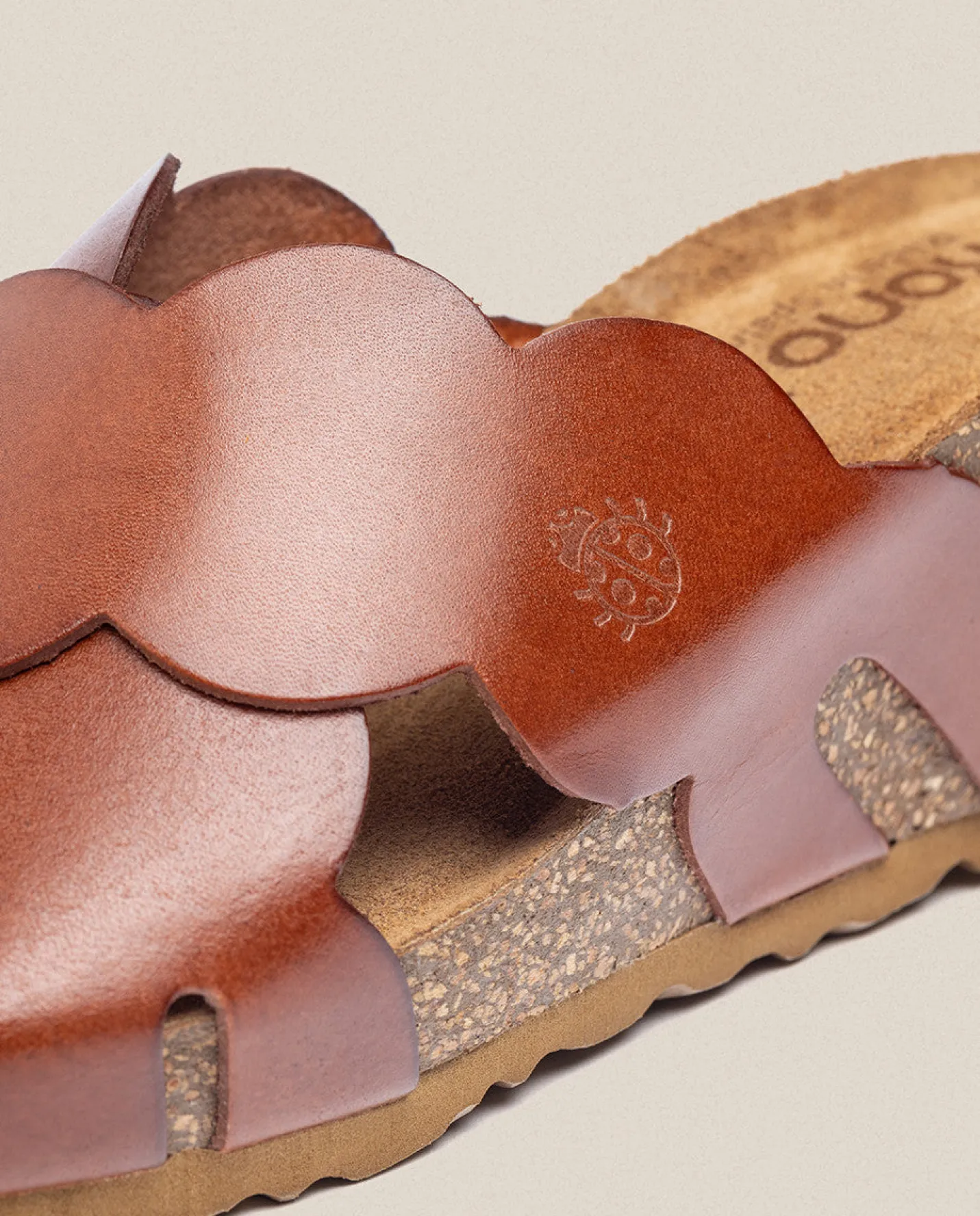 La sandalia de cuña CADIZ 300 en marrón, con un diseño de corte circular que aporta un toque diferente sin dejar de lado la esencia de la línea. Cuenta con una cuña de 5,5 cm y una plantilla antideslizante que garantiza el agarre del pie. Está elaborada de manera artesanal en España, material de piel y uso de tintes vegetales respetuosos con el medio ambiente.