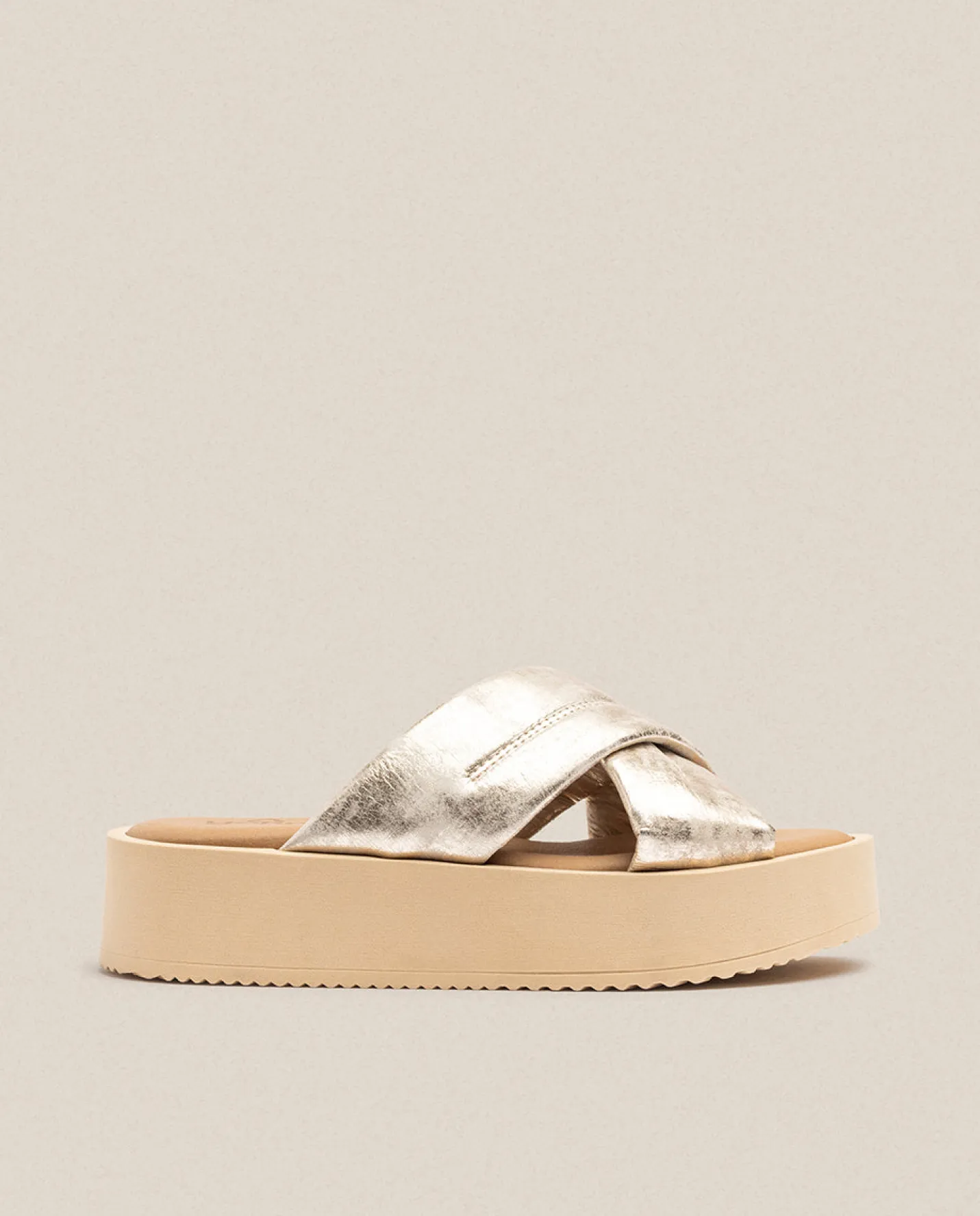 La sandalia de plataforma CARMEN 004, con dos tiras entrecruzadas a la altura del empeine es una elección elegante y cómoda. Con una plataforma de 4 cm, ofrece estabilidad y estilo para cualquier ocasión. Diseñada para realzar tu look diario, esta sandalia es la mejor opción para esta temporada. Hecha artesanalmente en España, utiliza tintes vegetales ecológicos que respetan el medio ambiente.