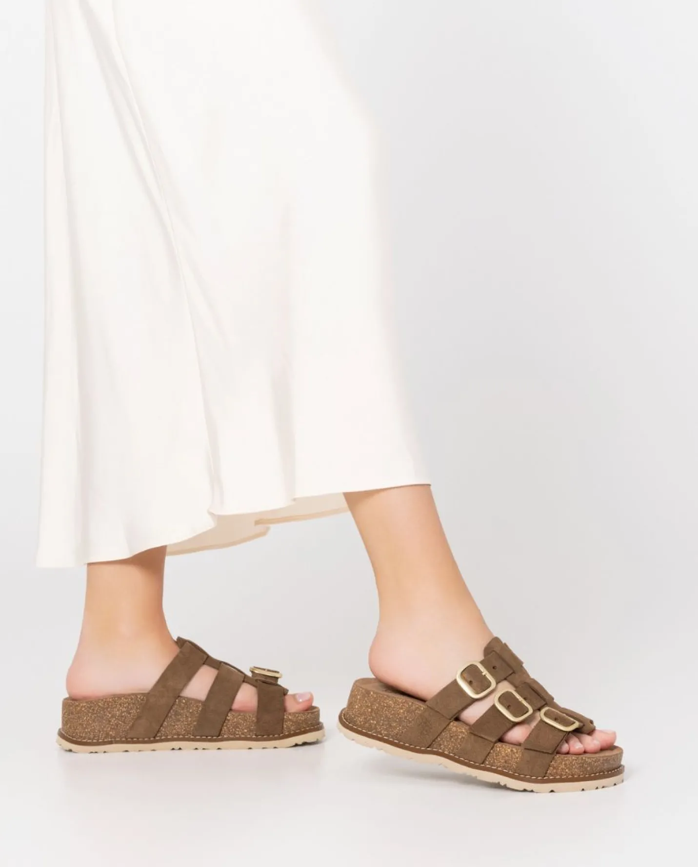 La sandalia de plataforma OCA 004 en marrón, parte de una nueva línea al puro estilo Yokono. Tres tiras distribuidas a lo largo del empeine que cuentan con hebillas ajustables para garantizar la comodidad y adaptabilidad a tus pies. Material serraje y detalles en el piso que aportan un toque desenfadado. Suela de 4cm y y una plantilla antideslizante que garantiza el agarre del pie. Está elaborada de manera artesanal en España, material de piel y uso de tintes vegetales respetuosos con el medio ambiente.