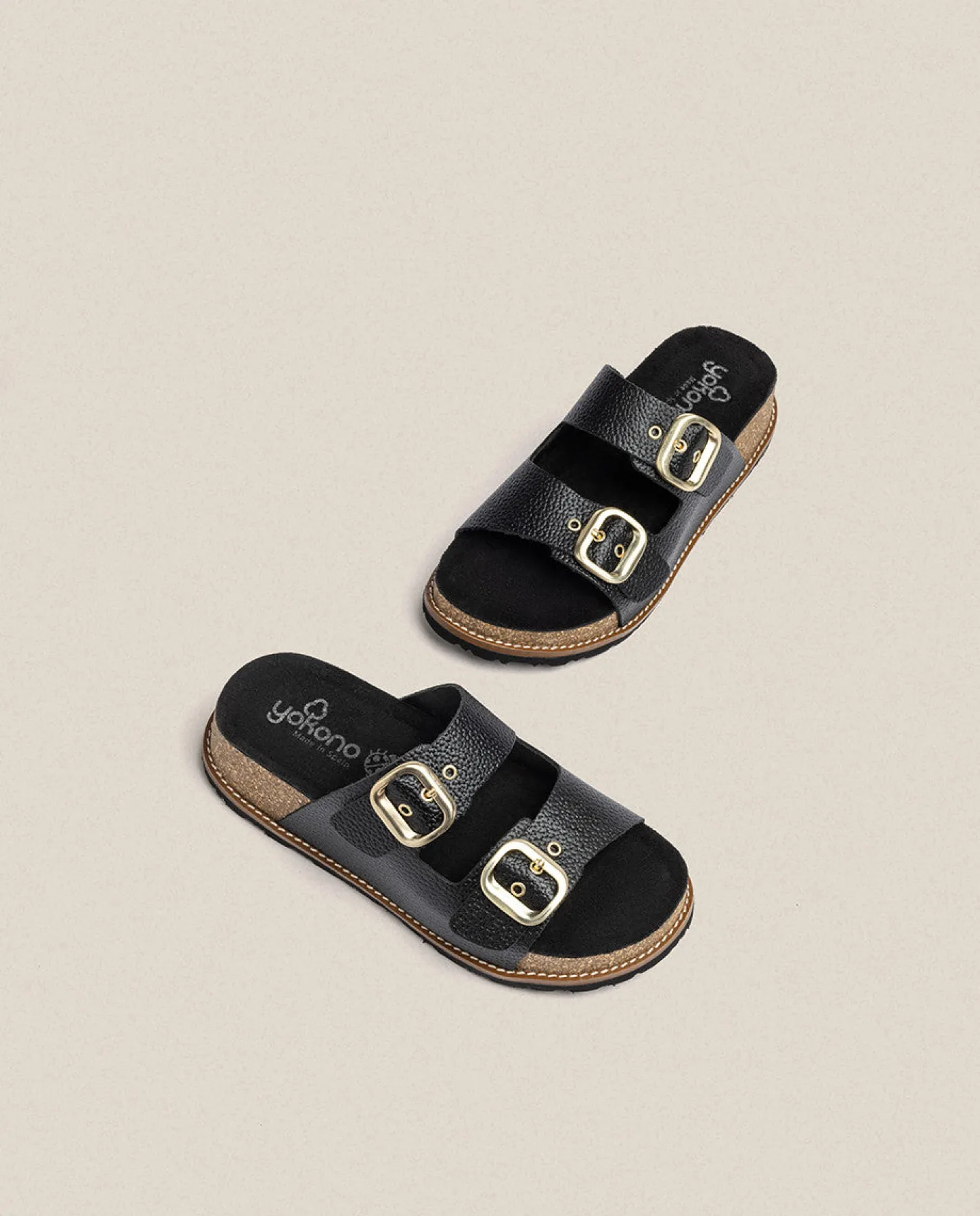 La sandalia de plataforma OCA 013 en negro, parte de una nueva línea al puro estilo Yokono. Sencilla y bonita, con dos tiras en el empeine y hebillas que prometen la adaptabilidad al pie. Suela de 4cm y y una plantilla antideslizante que garantiza el agarre del pie. Está elaborada de manera artesanal en España, material de piel y uso de tintes vegetales respetuosos con el medio ambiente.