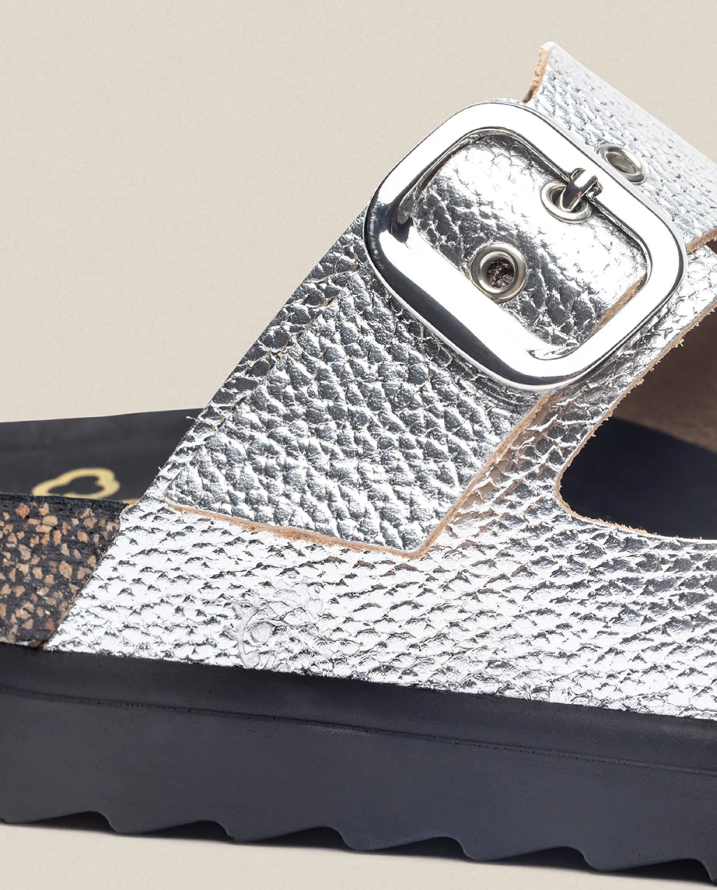 La sandalia de plataforma TUNEZ 130 en plata, el diseño más sencillo de toda la línea TUNEZ. No cuenta con ningún tipo de cierre, pero sí con dos hebillas doradas en las tiras del empeine que permiten adaptarlas a tus pies. La sandalia de plataforma ideal para tus planes del día a día.Plataforma de 4 cm y una plantilla antideslizante que garantiza el agarre del pie. Está elaborado de manera artesanal en España, material de piel y uso de tintes vegetales respetuosos con el medio ambiente