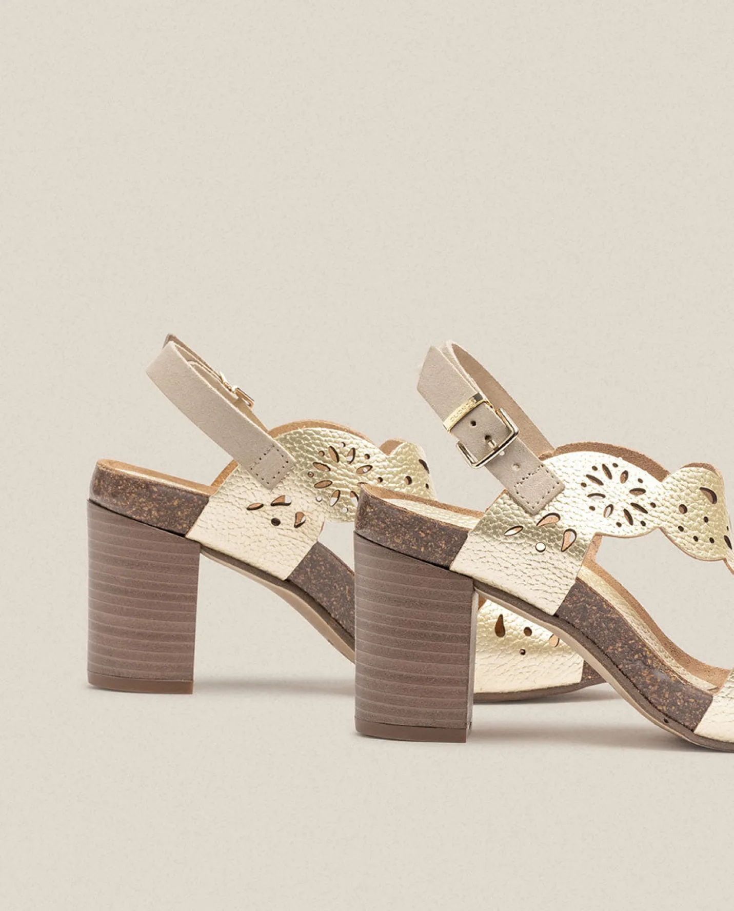 La sandalia de tacón PONZA 006 en dorado, con un diseño diferente y detalles que componen toda la sandalia. Cierre de hebilla que se adapta a tu tobillo para prometer la máxima seguridad. Tacón de 8cm y y una plantilla antideslizante que garantiza el agarre del pie. Está elaborada de manera artesanal en España, material de piel y uso de tintes vegetales respetuosos con el medio ambiente.