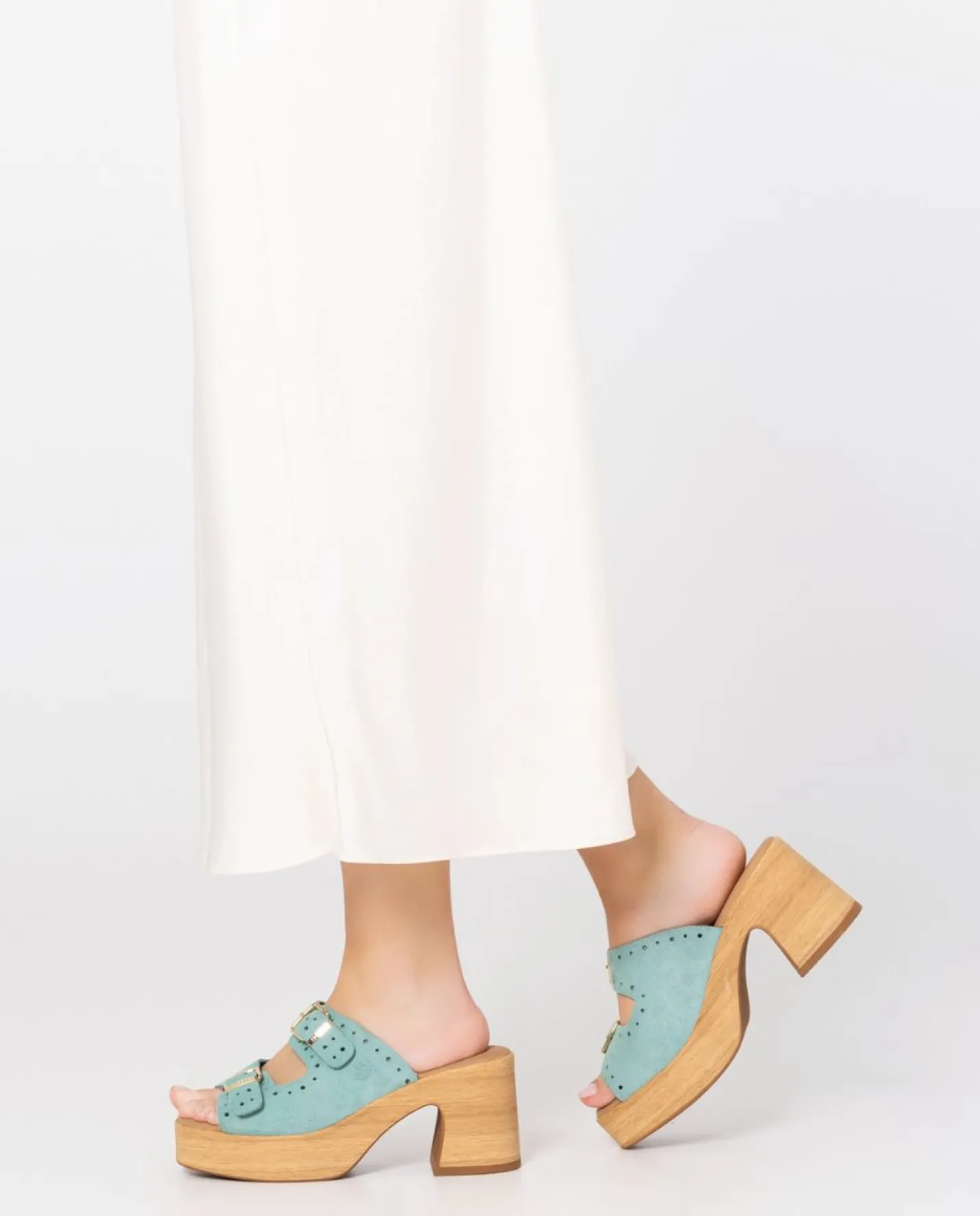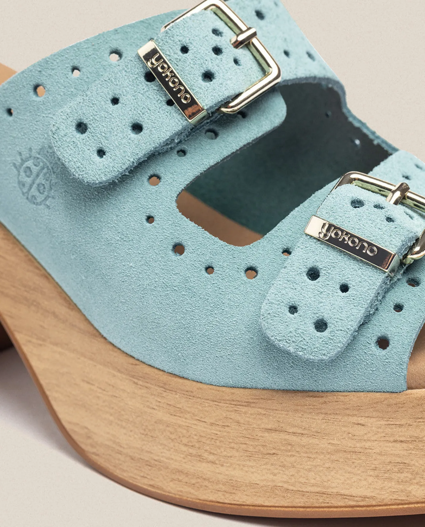 La innovadora sandalia de tacón BONAI 003 en azul, sencilla y cómoda, con dos hebillas ajustables para que se adapte a tu pie con facilidad. Tiene una suela de 5,5 cm y una plantilla acolchada y antideslizante que garantiza el agarre del pie. Está elaborada de manera artesanal en España mediante el uso de tintes vegetales respetuosos con el medio ambiente.